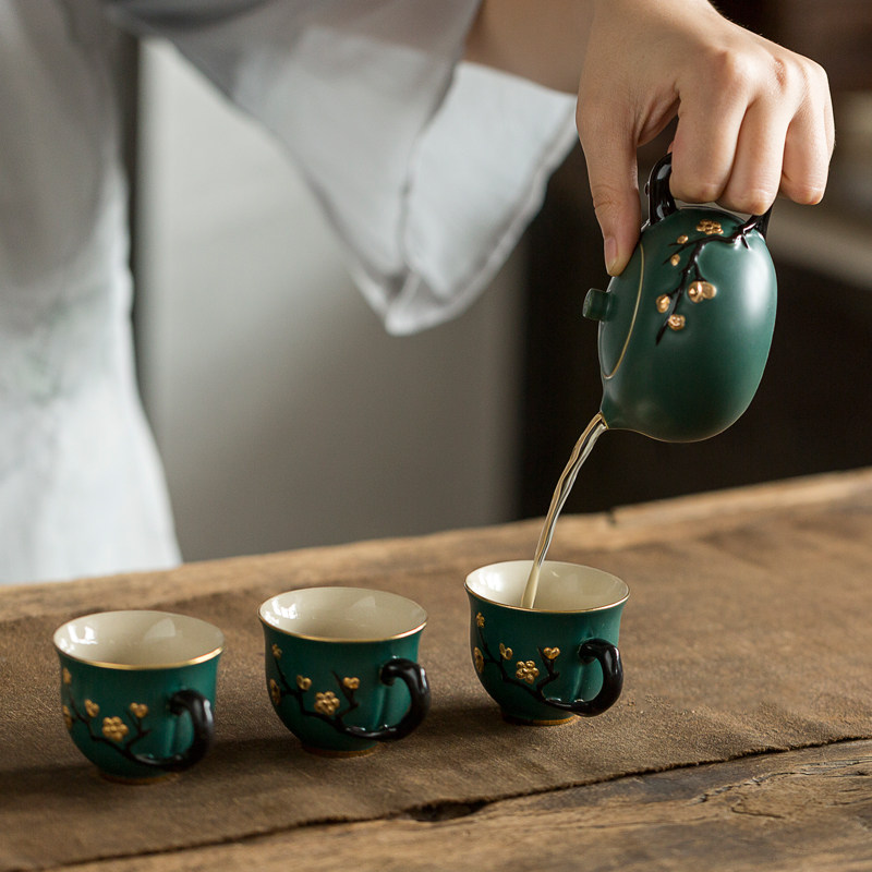 Tang Yue Kiln Travel Tea Set One Pot Three Cups Japanese Portable Tea Set Storage Bag Simple Household Handle Teacup