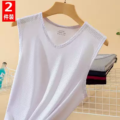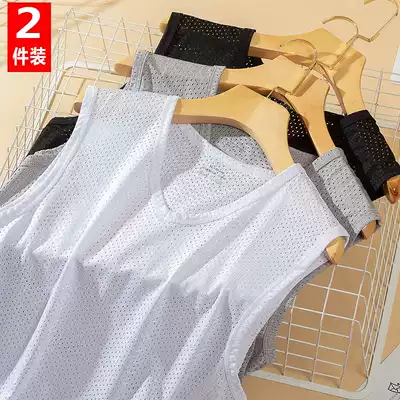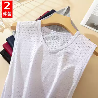 2-piece mesh ice silk vest men's waistcoat breathable quick-drying loose basketball sleeveless T-shirt sports thin summer tide
