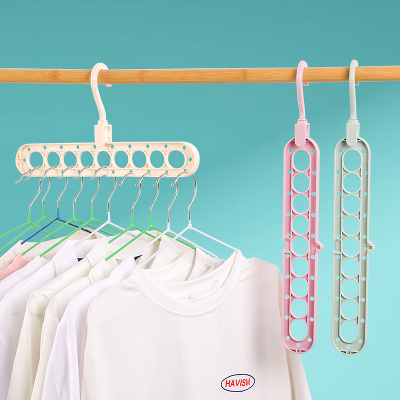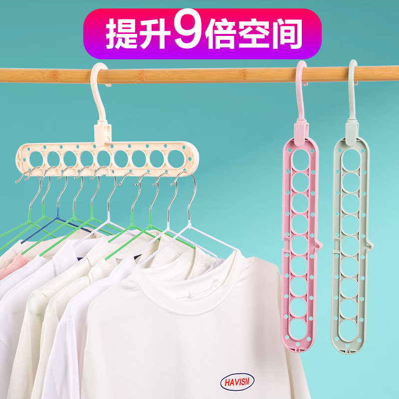 Multi-function hanger nine hole wardrobe storage artifact folding home net red rotating clothes rack magic creative hook