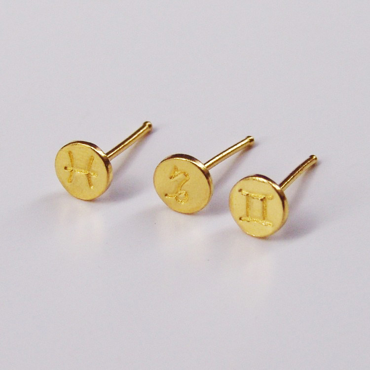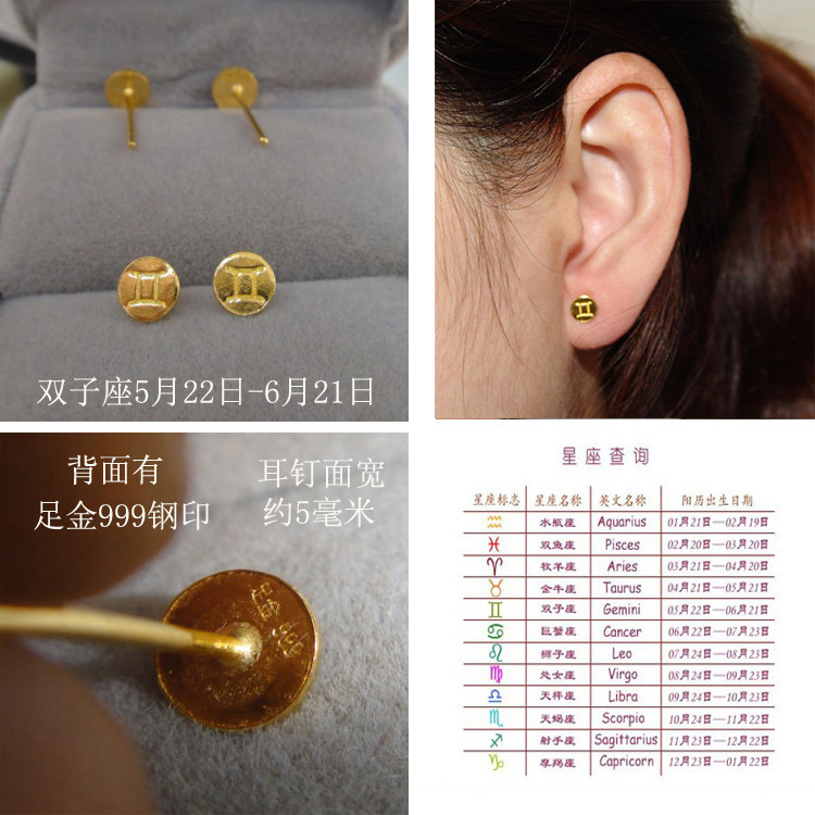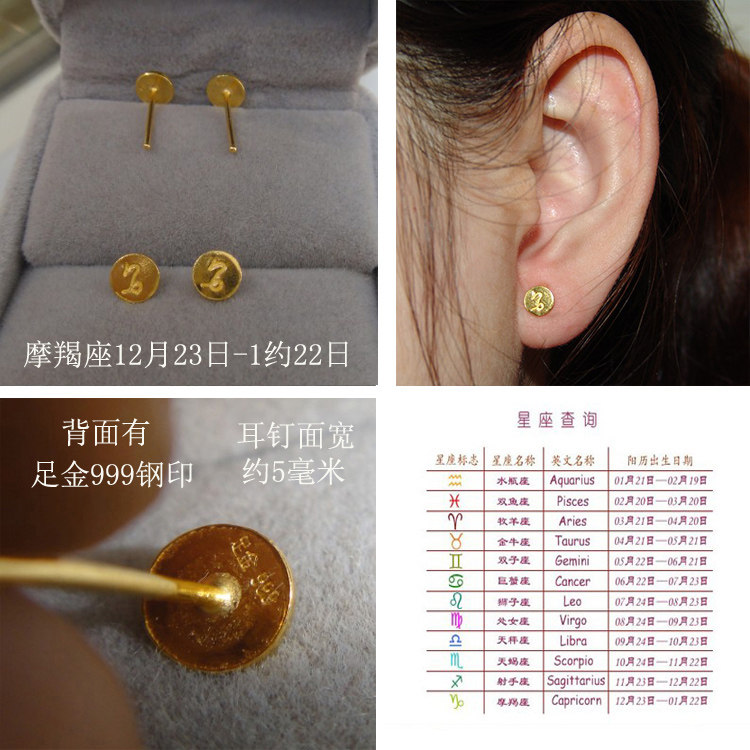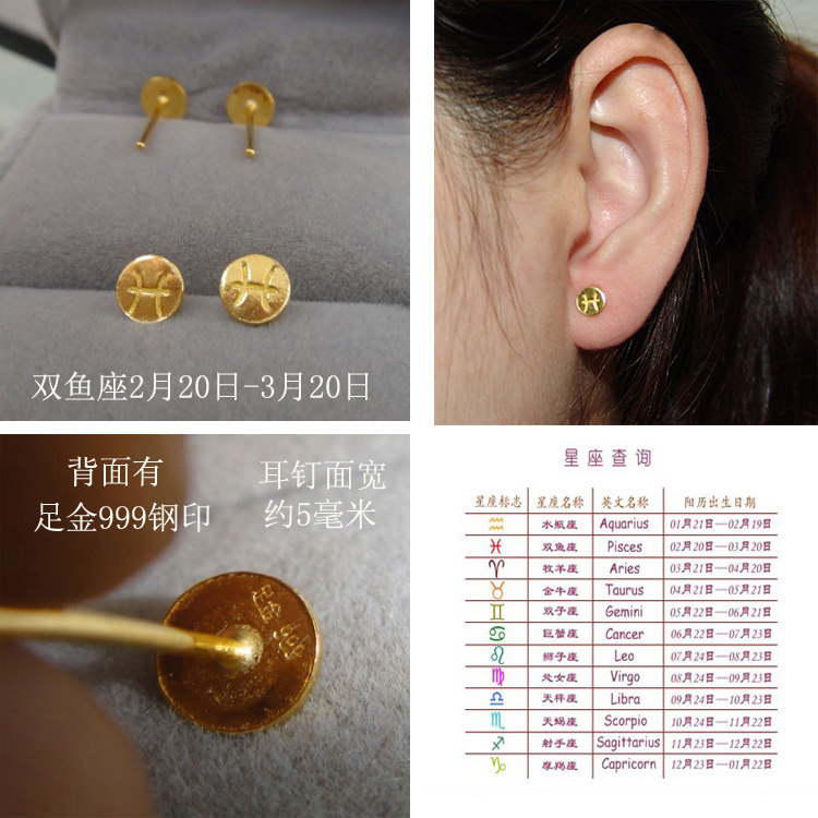 999 full gold twelve constellations earrings men double fish capricorn lion earrings femininity single pop male Korean version of net red