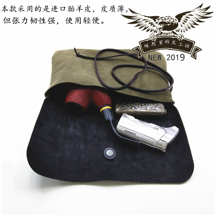 Handmade Portable Tobacco Bag Leather Portable Tobacco Bag Large-capacity Cigarette Case Bag Hand Rolled Tobacco Bag Contrast Color Soft Leather Storage Bag