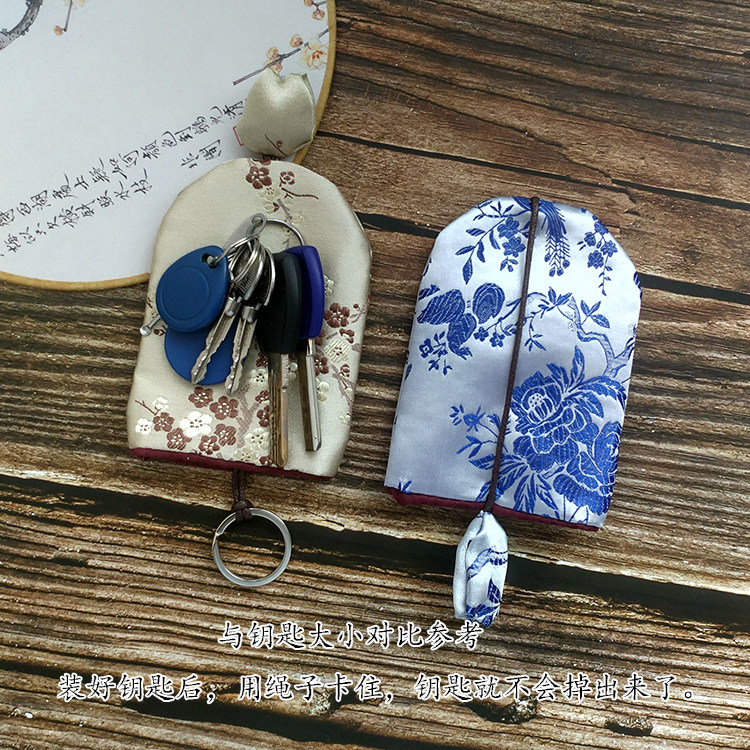 Original handmade brocade fabric art pull-out key bag creative car key protection cover for men and women fabric art key bag