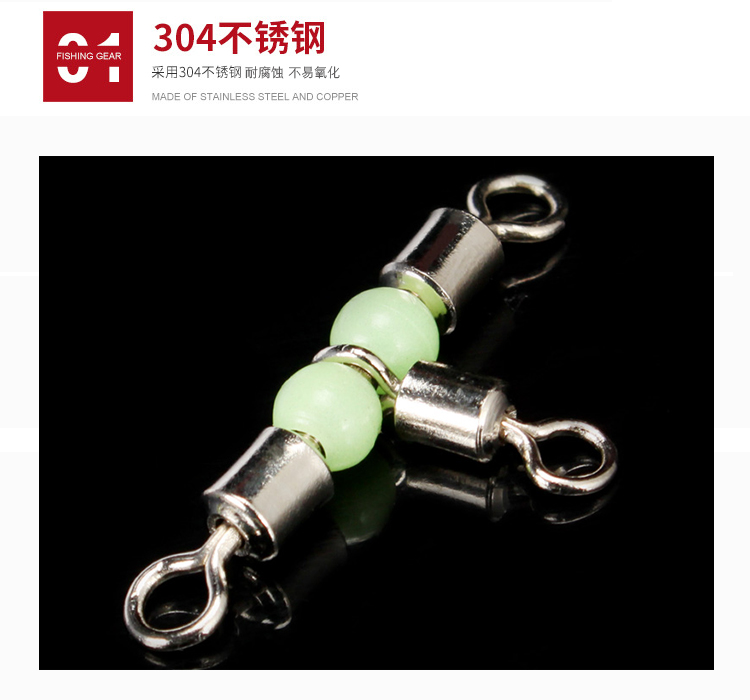 American-style three-pronged luminous beads swivel boat fishing connector bifurcation 8 eight-character ring T-shaped swivel fishing gear small accessories sea fishing