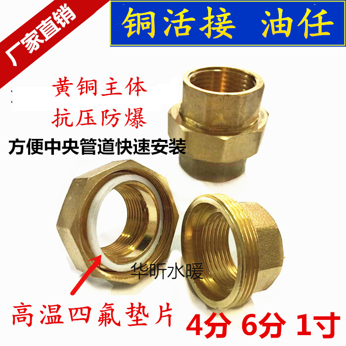 Full copper thickened double inner silk copper alive oil Ren 4 points 6 points 1 inch Netooth copper direct water pump water pipe activity joint