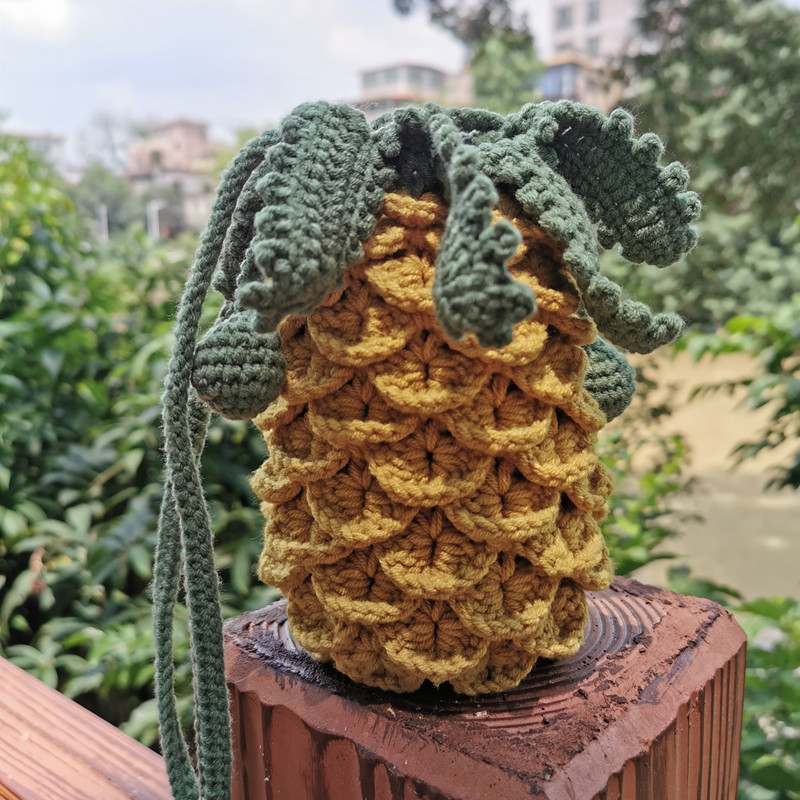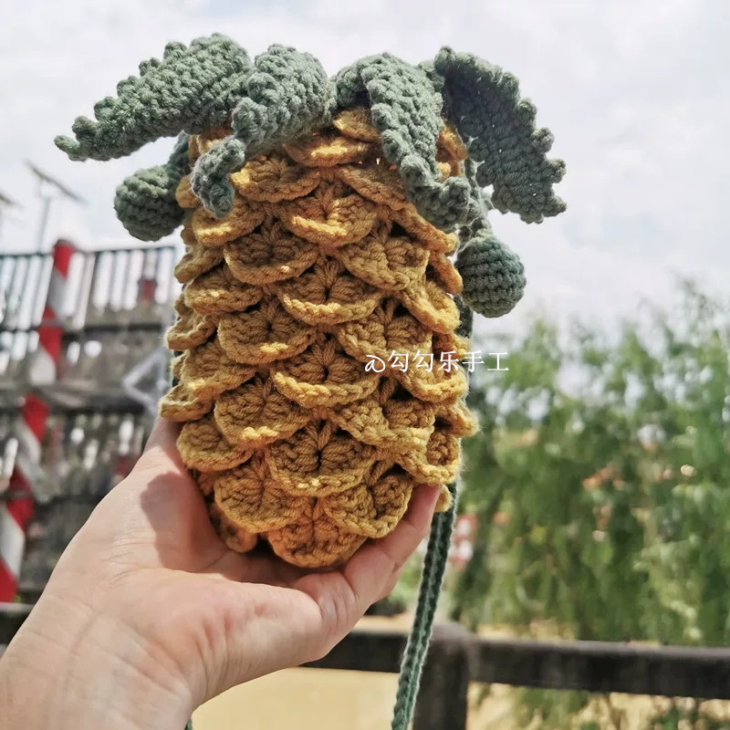 Hook-Hook Handmade Pineapple Small Satchel Bag Retro Mobile Phone Bag Crochet Wool Cord Diy Woven Material Bag Film