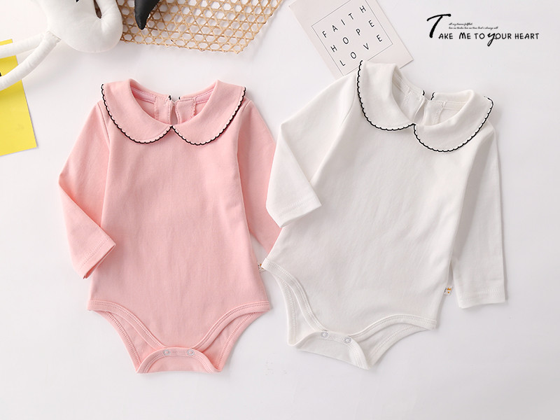 Baby girl spring and Autumn cotton lace doll collar base shirt Baby white jumpsuit coat Girls autumn clothes