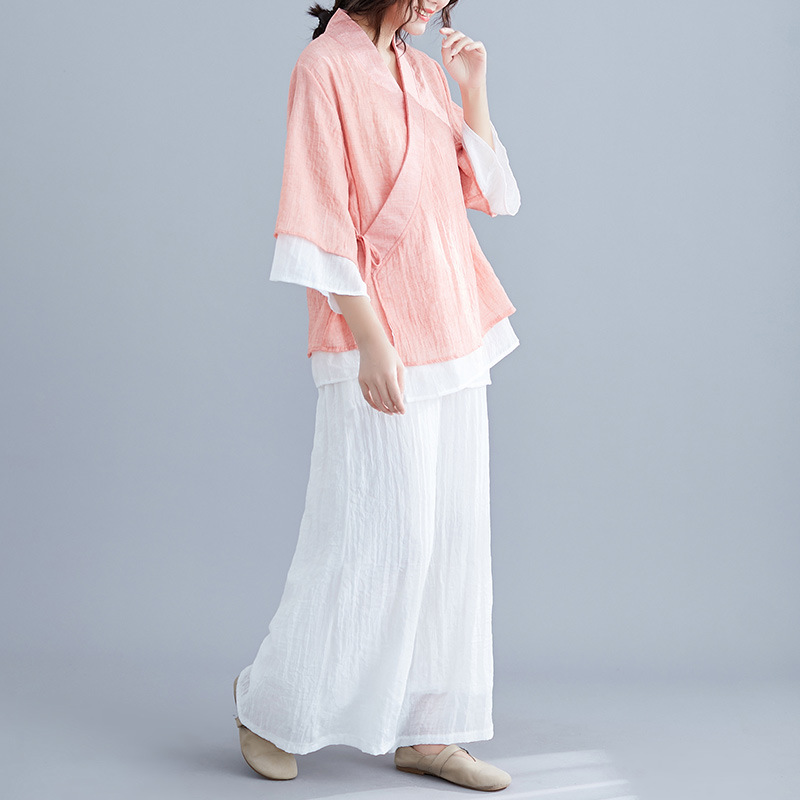 Chinese style of wind gusty with Buddhist mantra cotton linen Two sets of women's clothing Loose Casual Zen's Tea Costume Tea Art Teacher