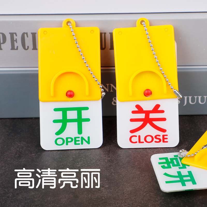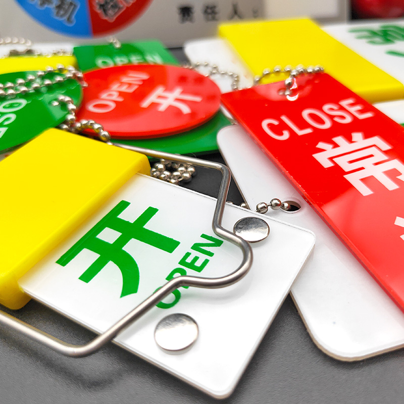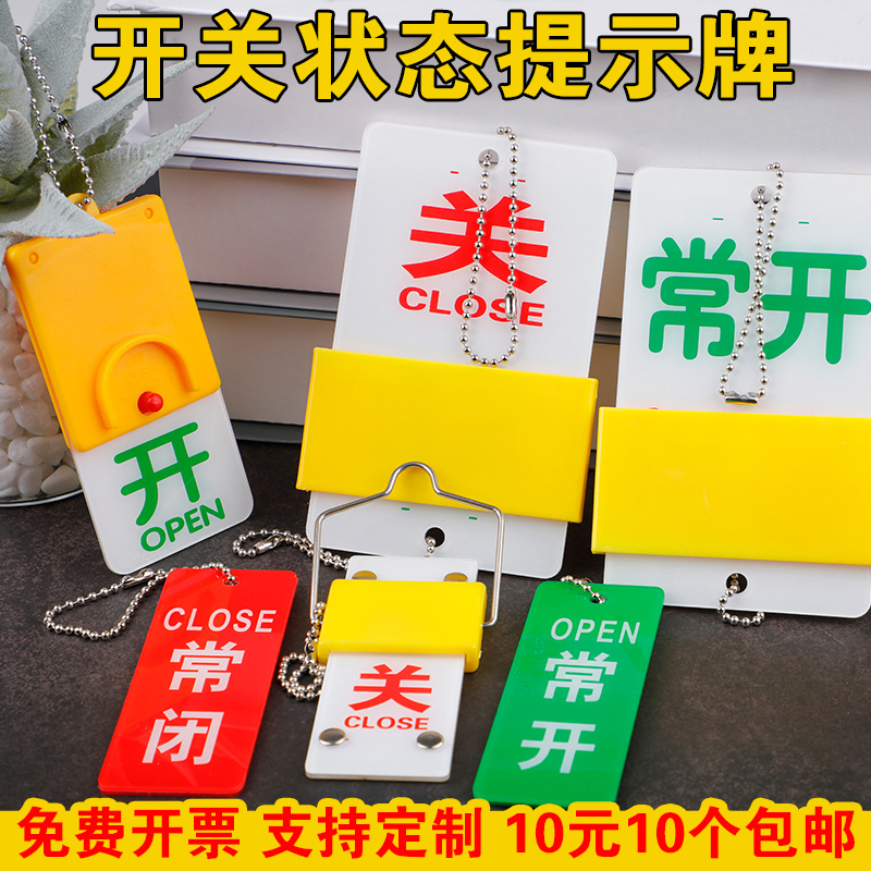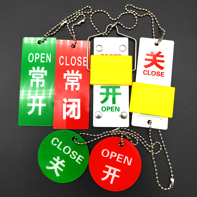 Open and off switch status indicator signage slide acrylic double-sided printing valve equipment frequently open and adjusted punch with hanging chain suspended factory silk printing pipeline new spot can be customized
