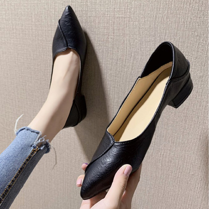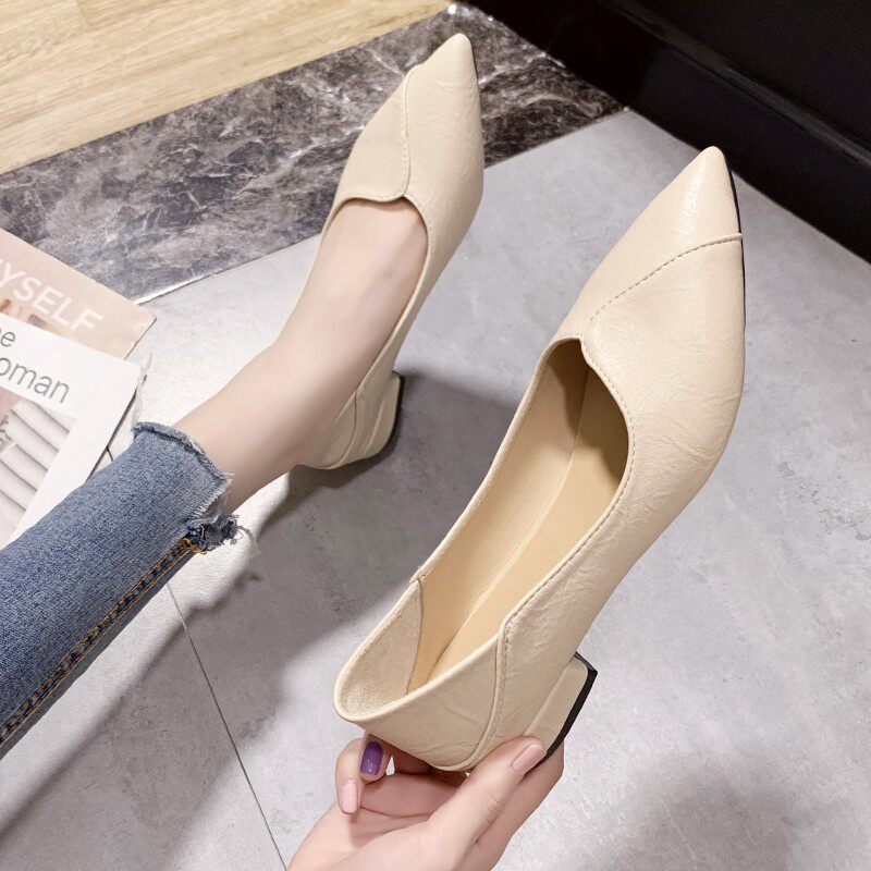 2022 Spring Fall New Bag Shoes Women Black White Tide Shoes Coarse Heel High Heel Flat Work Pointy Grandma Shoes