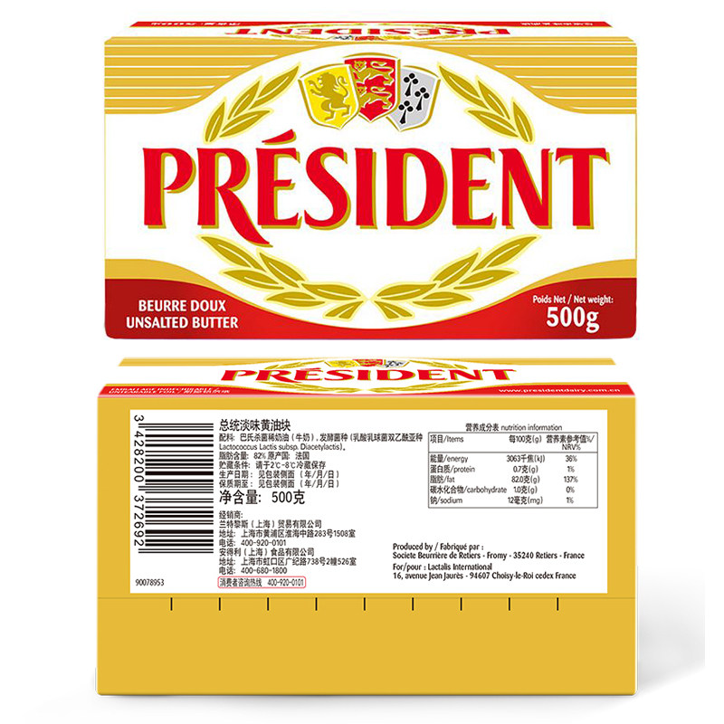 Presidential fermented animal light cream 500g*2 pieces imported from France to make snowflake crisp steak biscuits home baking