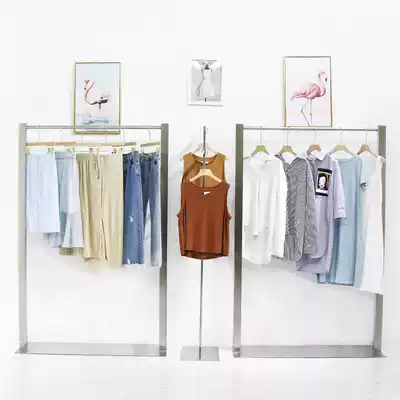Clothing store hanger display rack Floor-to-ceiling gold side hanging Nakajima display rack Women's store stainless steel brushed rack