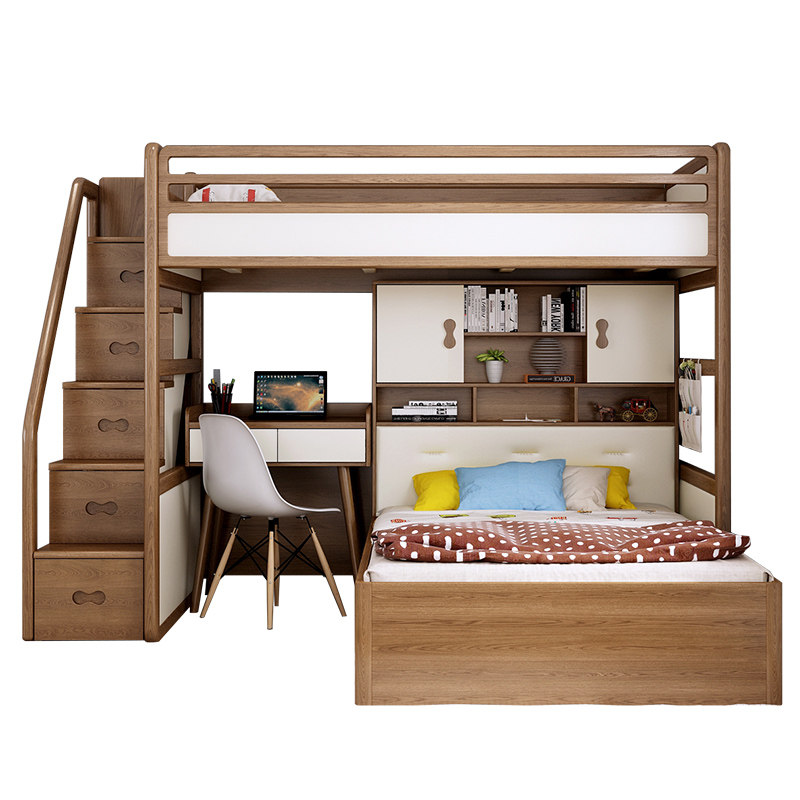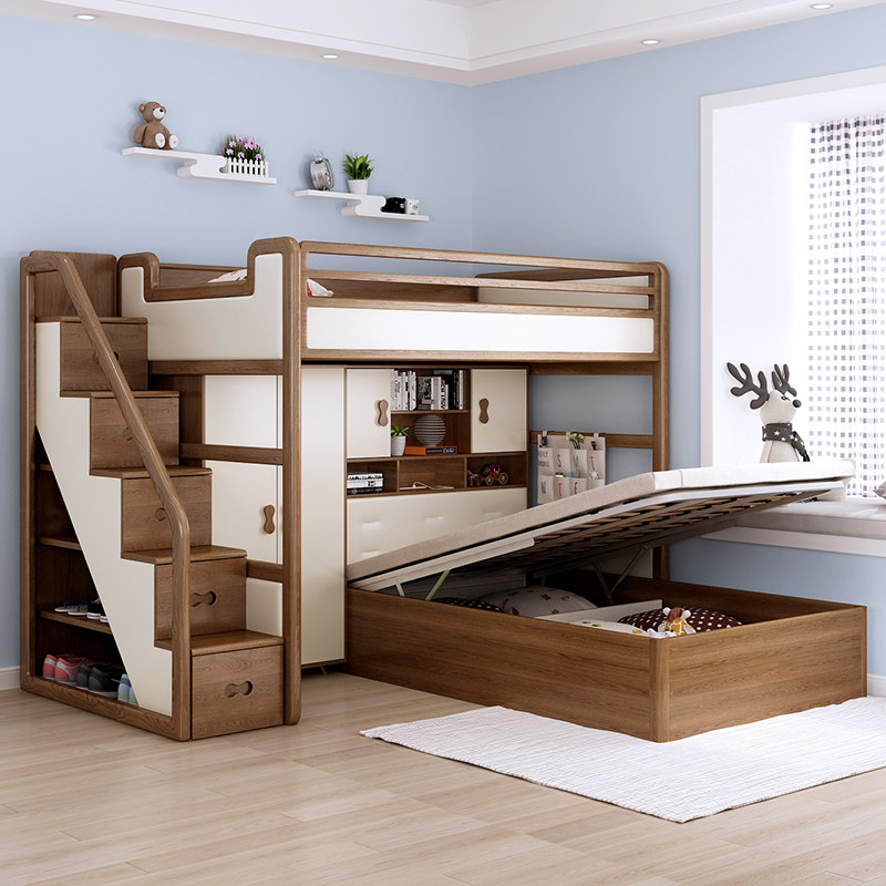 Ultra - functional combined bed wardrobe desk bed solid wood adult children get out of bed height and low bed mother bed