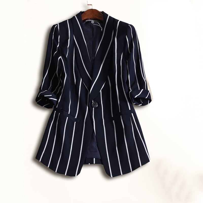 2022 new spring and autumn clothes Korean version go out loose fashion fairy small suit Western style slim striped coat ladies