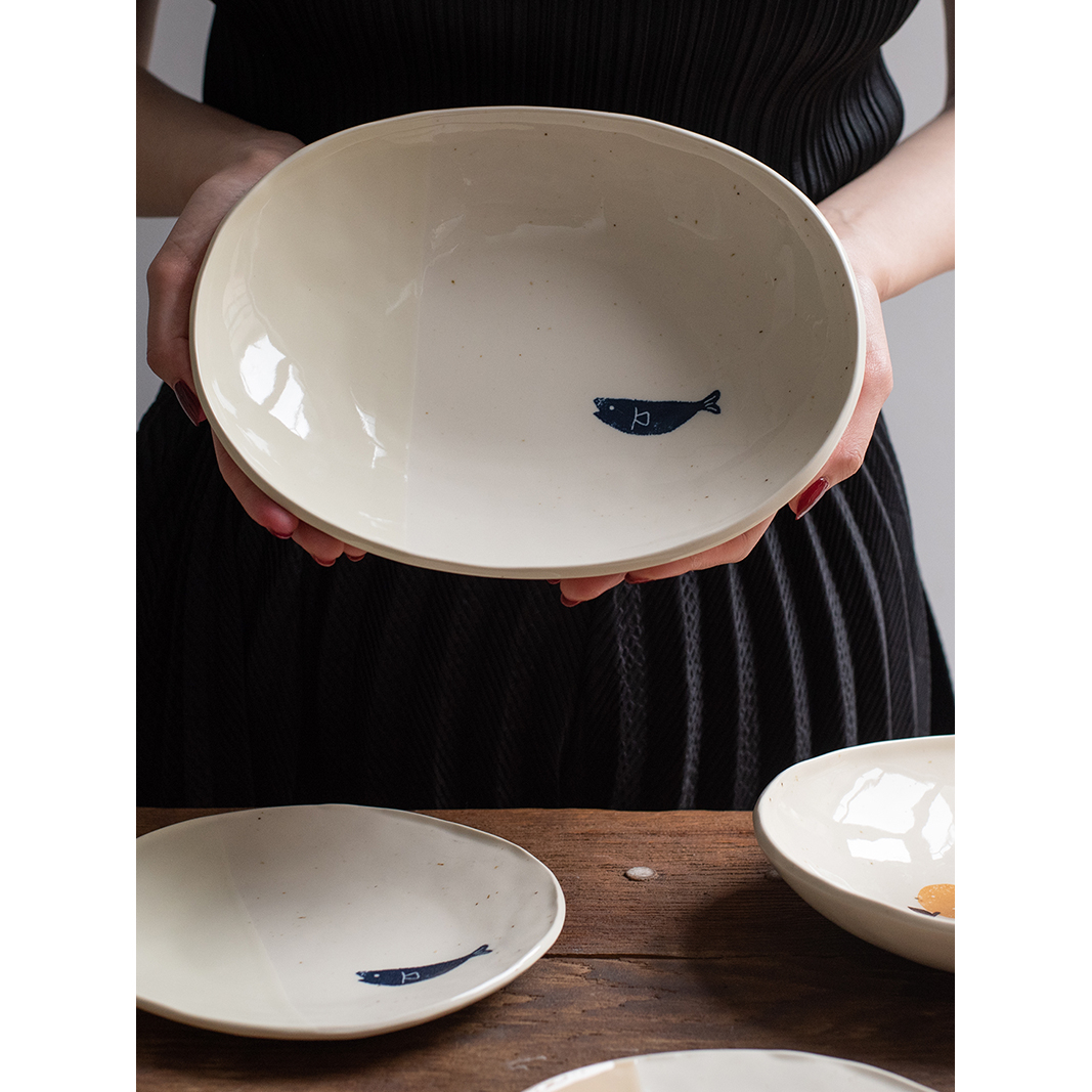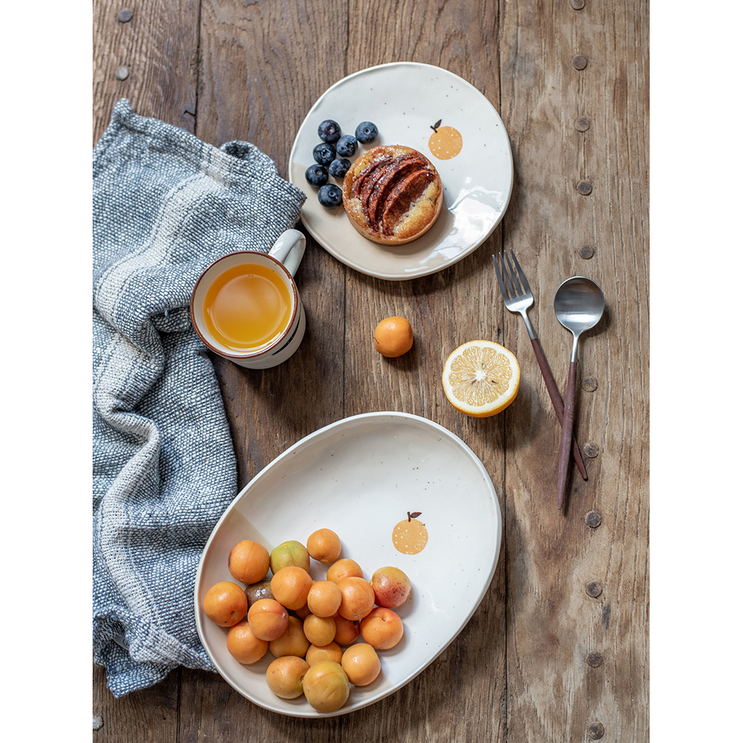 Japan Imported Meinesy Burnt Handpainted Grapefruit Ceramic Mark Cup Coffee Cup Large dinner plate Oval Home Long Disc