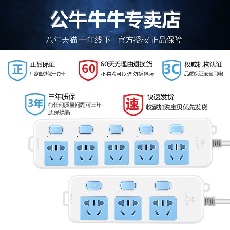 Bull socket panel porous function household long wire towing terminal board electric plug-in row plug-in plate with wire 1 8 m 3