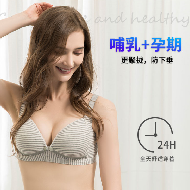 Nursing underwear pregnant women's bra gathered anti-sagging cotton feeding bra pregnancy postpartum women's summer thin spring and autumn