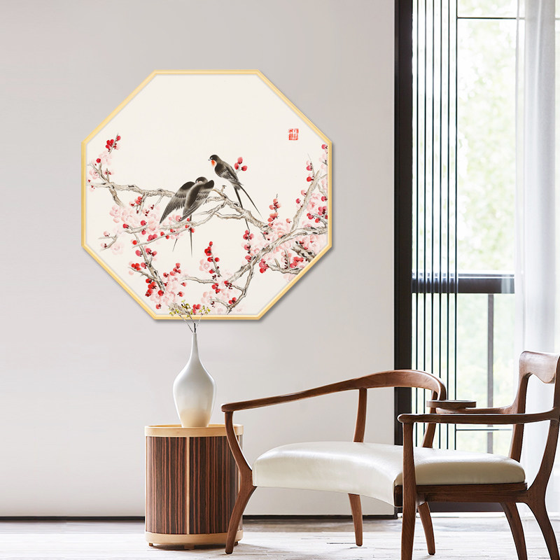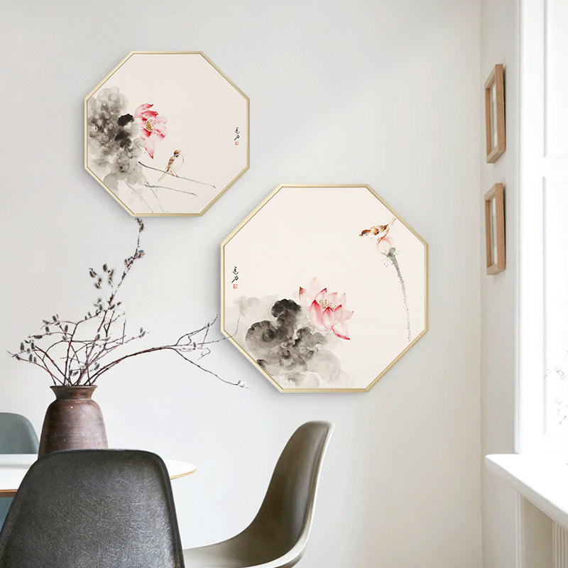 New Chinese hand painted National painting octagonal decoration painting modern brief Xuan Xuan Xuanguan Corridor Hang Painting Dining Hall Painting Purple Vines Gold Fish