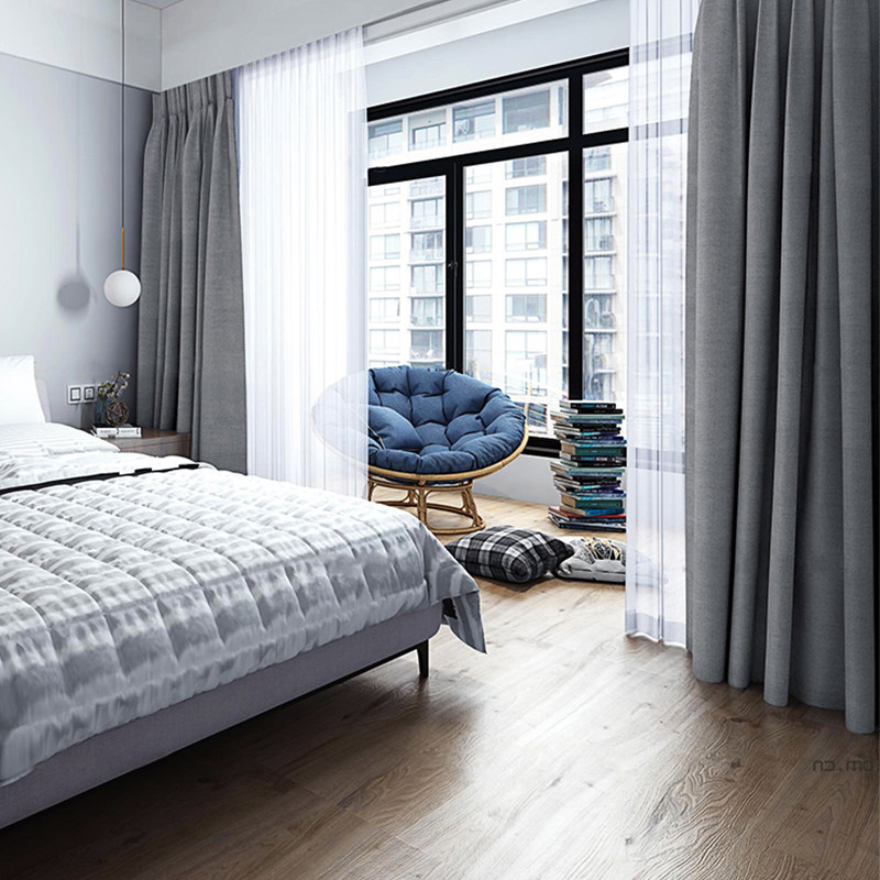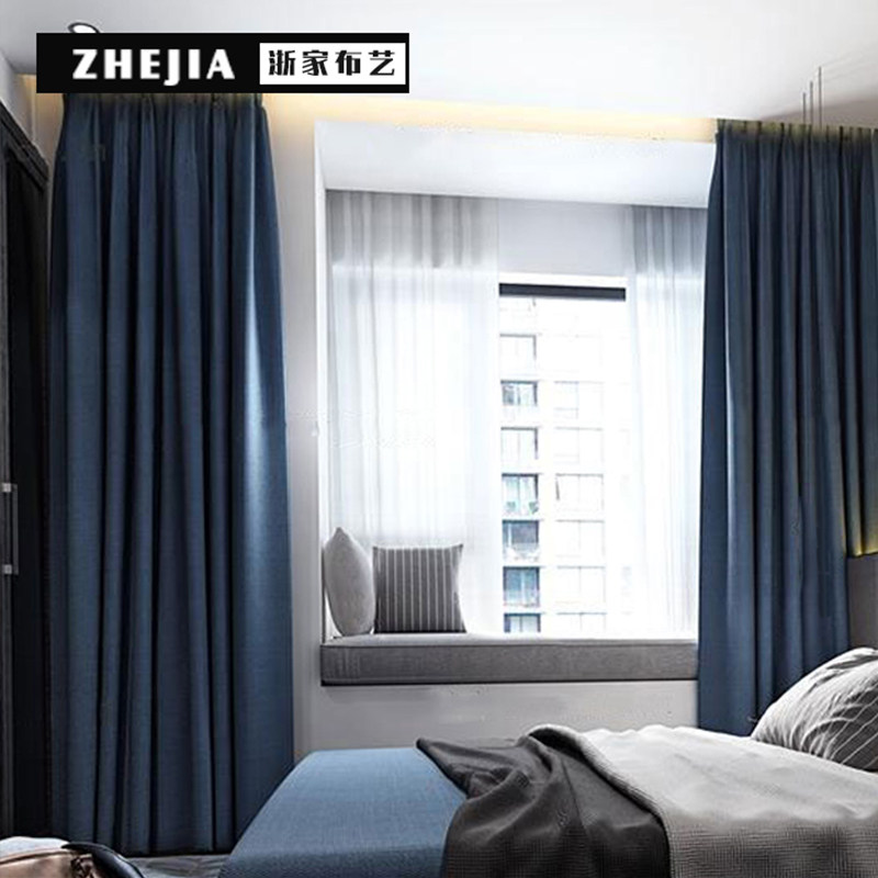 Nordic thickness simple shading curtains full covering bedroom cotton linen pure environmentally friendly living room curtains installed yarn