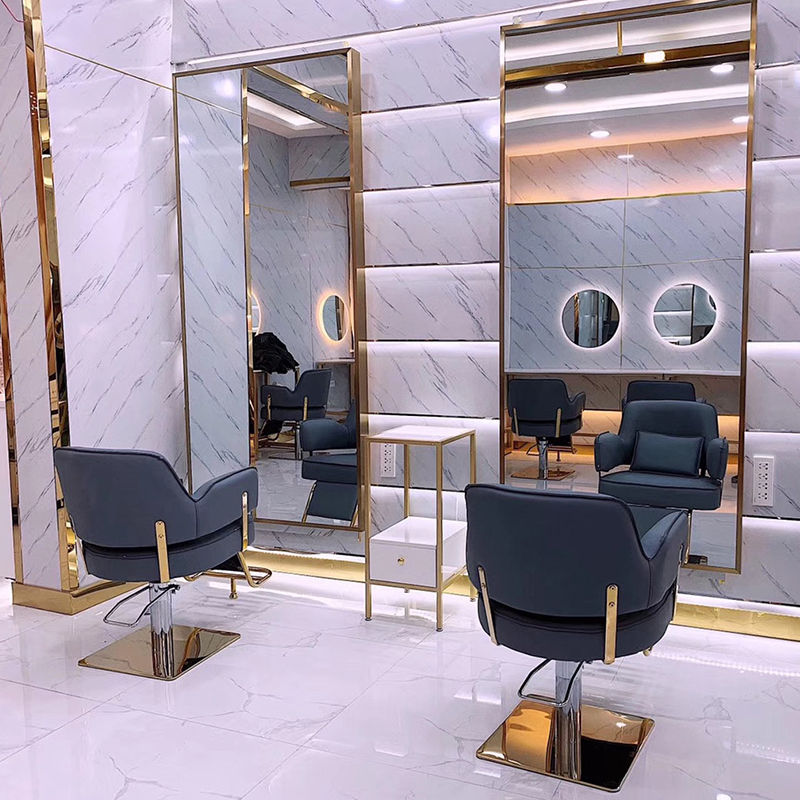 3AM net red hair shop chair hair salon special haircutch chair lift rotating stainless steel gilded backrest chair