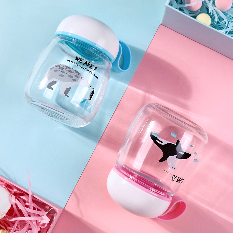 Cute water cup portable glass mini cute polar bear penguin cartoon accompanying cup fresh student men and women cups