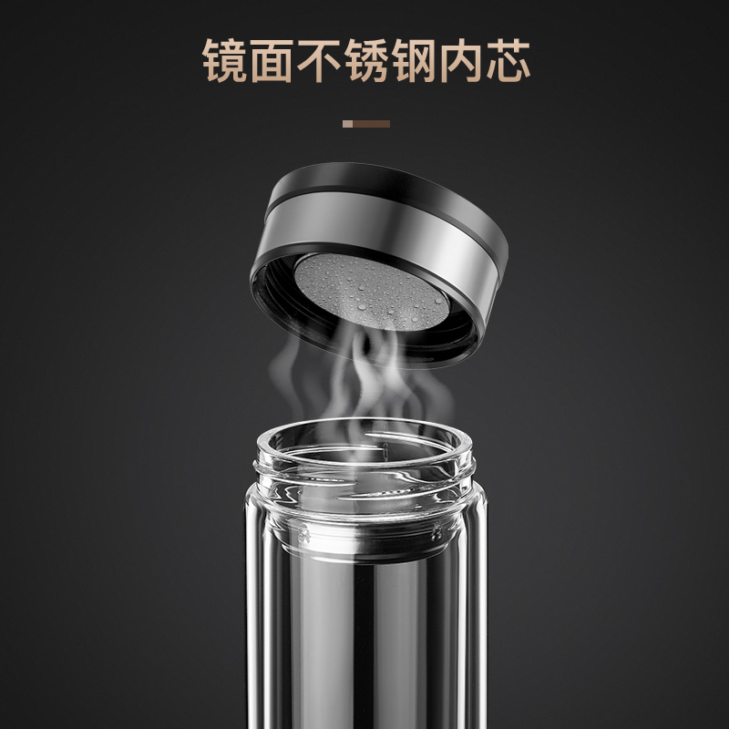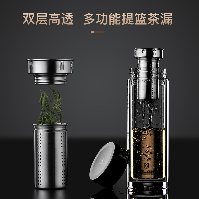 Kellin Men's Glazed Glass Upscale Bubble Tea Cup Tea Water Separation Double belt to make model public business water glass portable heat resistant
