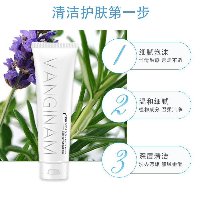VANGIN mild amino acid foam washed face milk moisturizing and moisturizing deep cleaning pores wash face cream female men