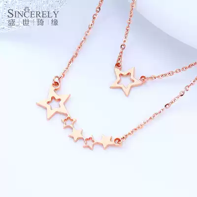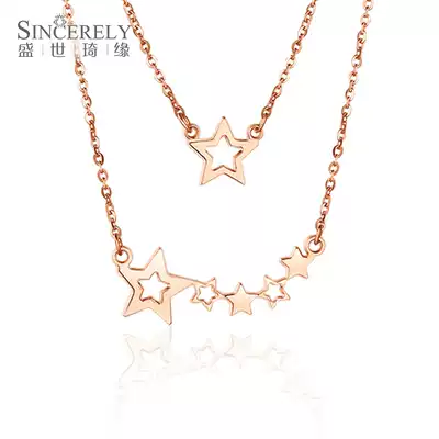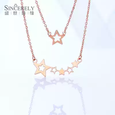 18K Rose Gold Necklace Gold Necklace Female choker Double Stackle Star K Gold Necklace Zijin Necklace Pendant