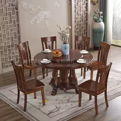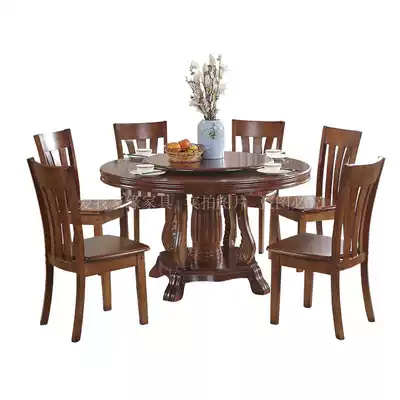 Solid wood 1 2 meters 1 3 meters 1 6 meters 1 8 dining table Rubber wood dining table and chair combination Hotel round table Hotel round table