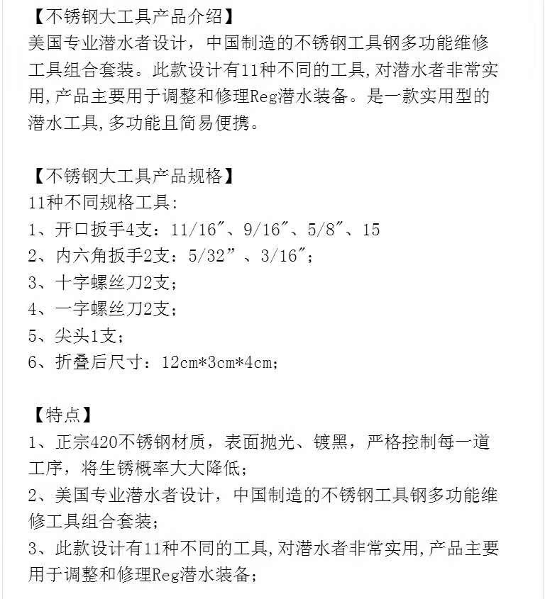 Submersible Multifunction Tool Diving Special Stainless Steel Multifunction Regulator Buoyancy Vest Repair Tool-Taobao