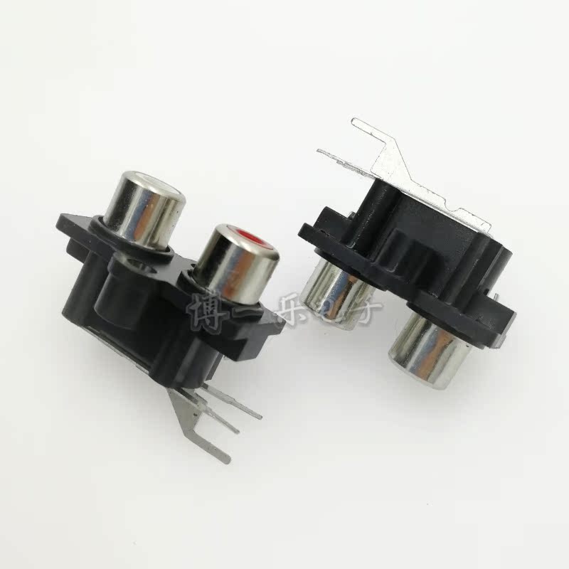 AV cocore connector Audio signal socket RCA-207 2 holes black base on white lower red AV2-8 4