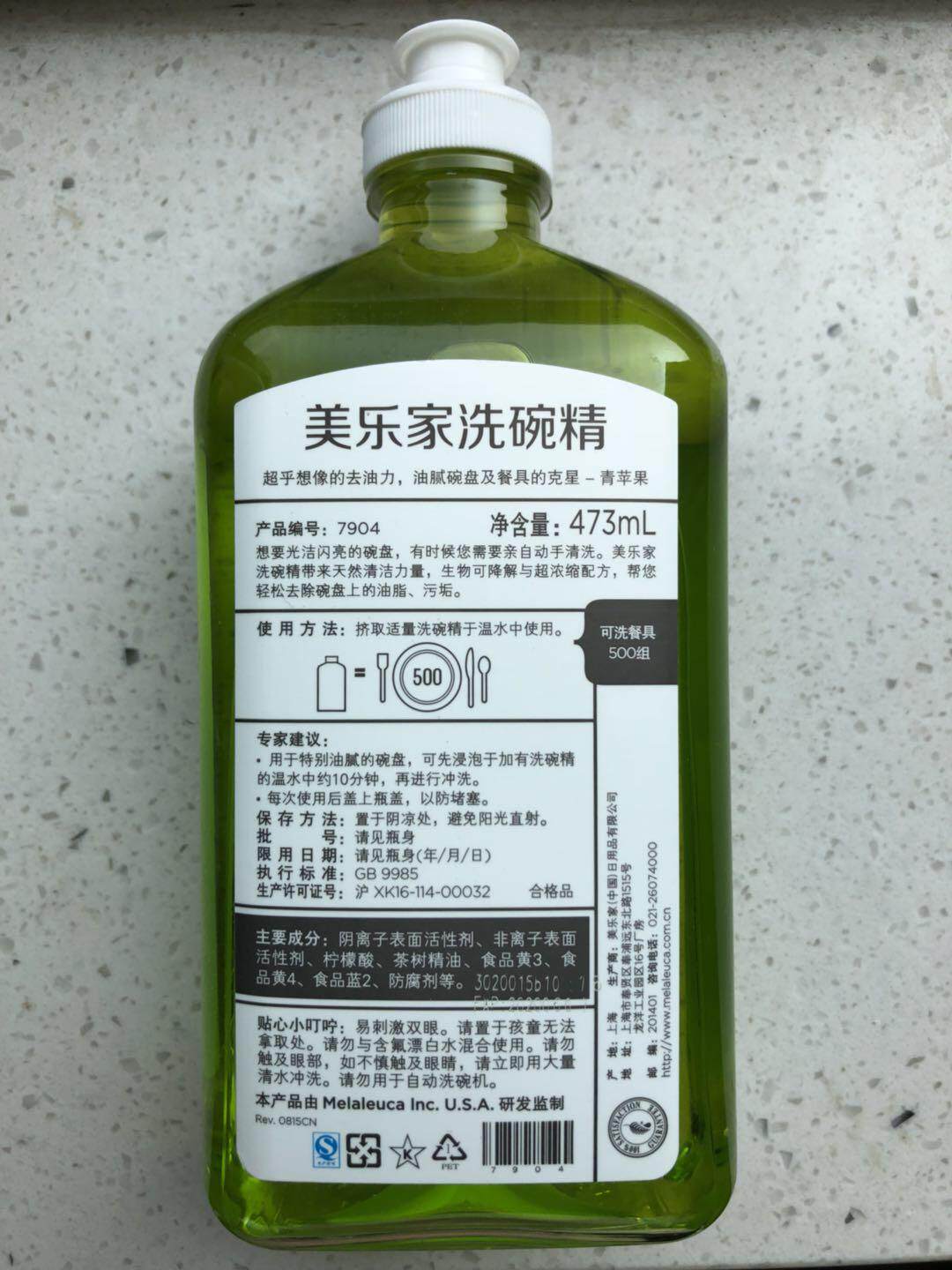 7904 Melaleuca Dishwashing Detergent-Green Apple 473ml Melaleuca Apple Dishwashing Detergent Dishwashing Detergent Tableware Cleaning