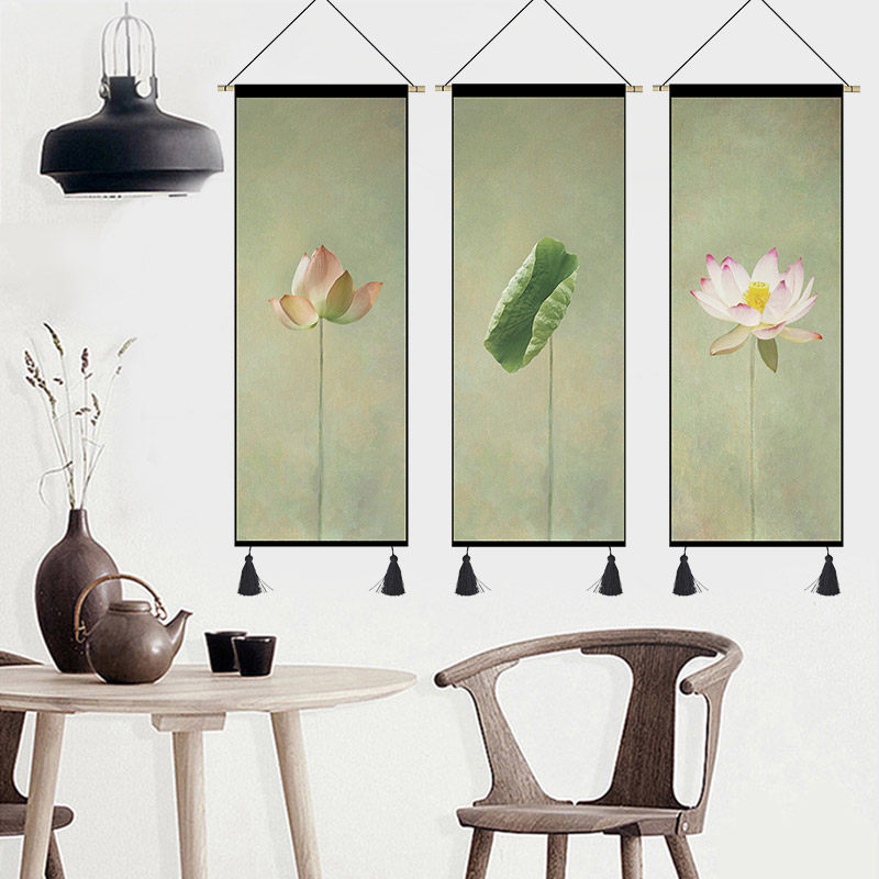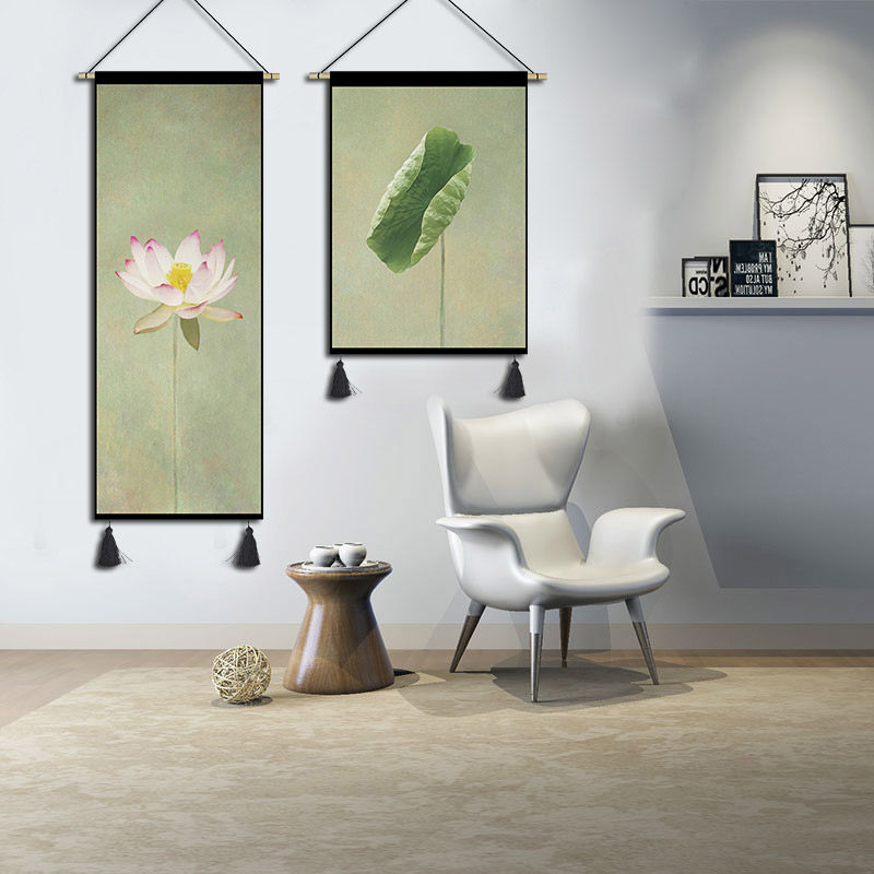 New Chinese Lotus Hanging Painting Living Room Decorative Painting Tapestry Chinese Style Entrance Sofa Decorative Backwall Chinese Simplicity