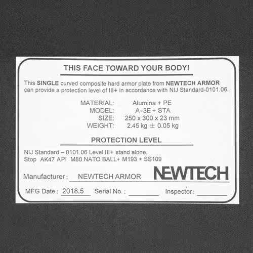 (Survival Gear Supermarket) Ceramic bulletproof plugboard III class alumina single curved built-in chest insert