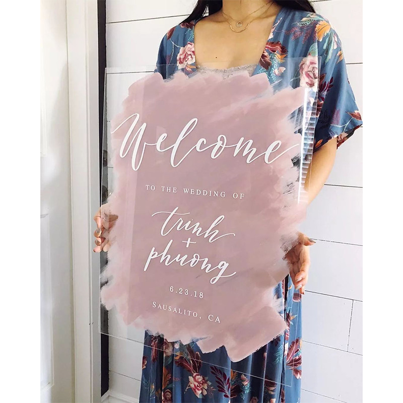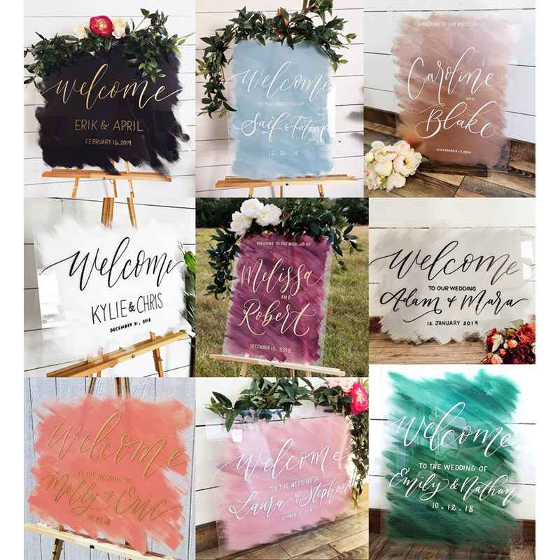 Acrylic Wedding Signs Online Red Engagement Wedding Ceremony Welcome Card Wedding Waterboard Transparent Opening Birthday Greeting Cards