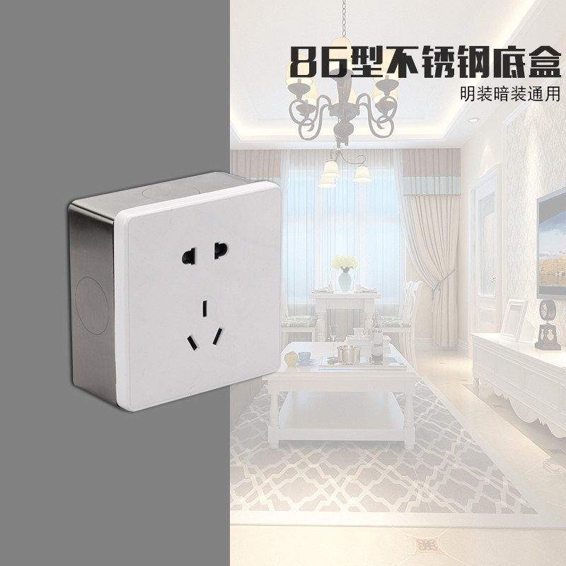 Stainless steel switch socket surface-mounted bottom box ultra-thin 86-type universal wall panel split-line over-line box thickened clear box