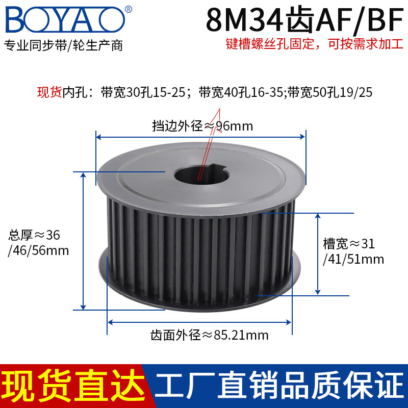 Synchronous wheel spot 8M-34 tooth carbon steel belt pulley 35 teeth keyway fixing suit mechanical transmission synchronous pulley