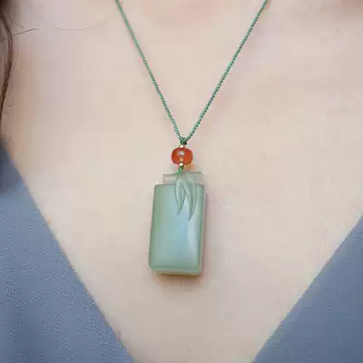 Good Art Bamboo and Tian Jade Pendant Green Jade Bamboo Festival Pendant Men's and Women's Neck
