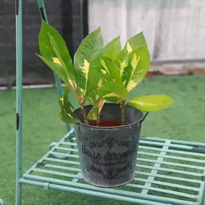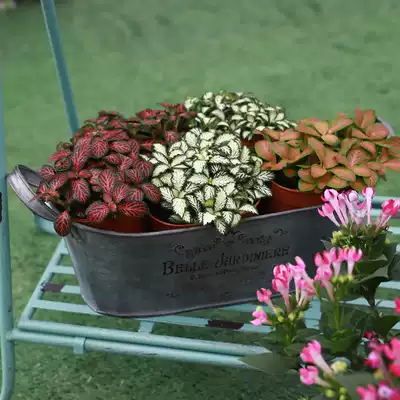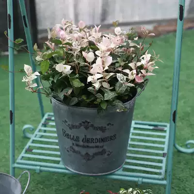 Wrought iron gray letter Vine hollow double ear flower pot American country style round tin garden groceries