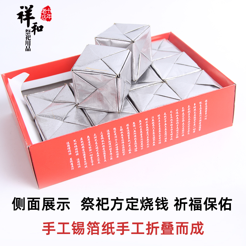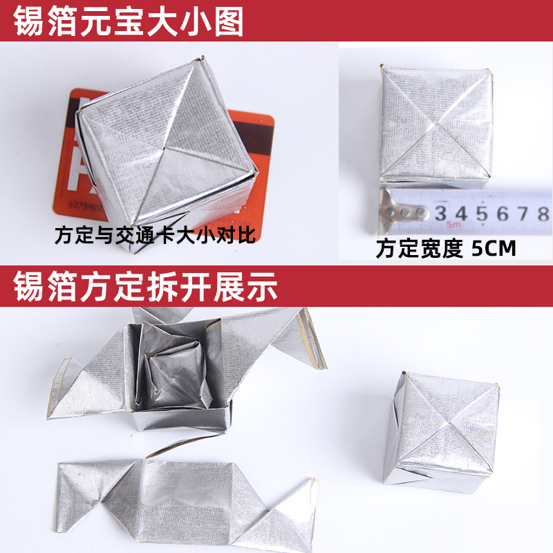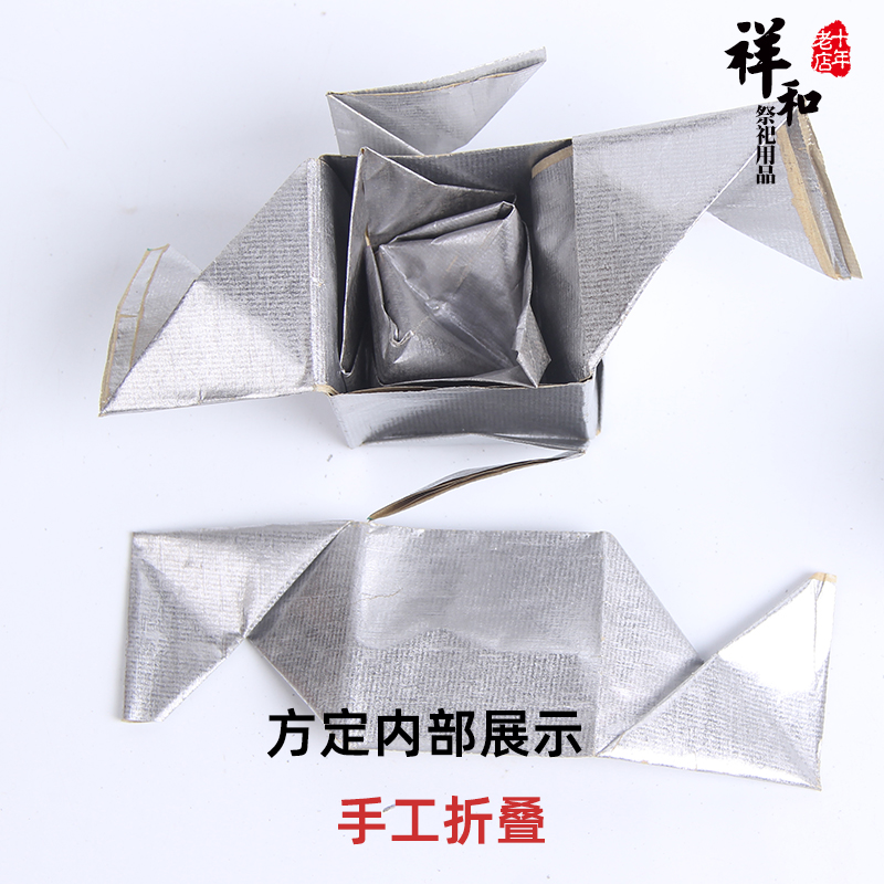 Sacrificial supplies Handmade tin foil paper Handmade folding tin foil large square ingots 12 pieces of ingot sacrifice ancestors to the grave