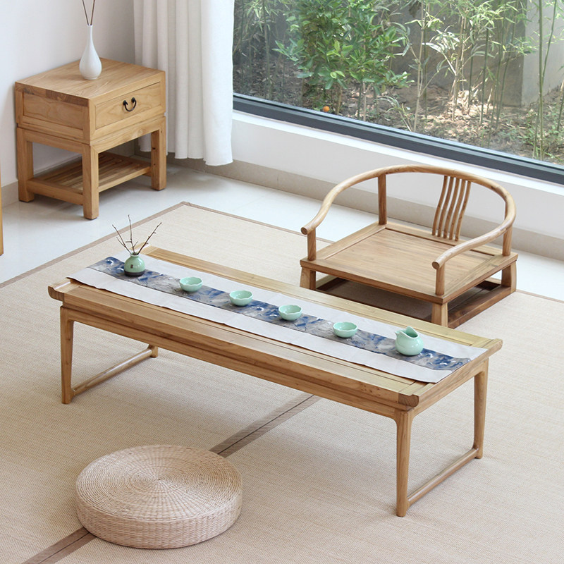 Solid Wood Tatami Tatami Tea Table Day Style Balcony Short Table Minima Tea Table Small Kang Table New Chinese Old Elm Wood Pit A Few