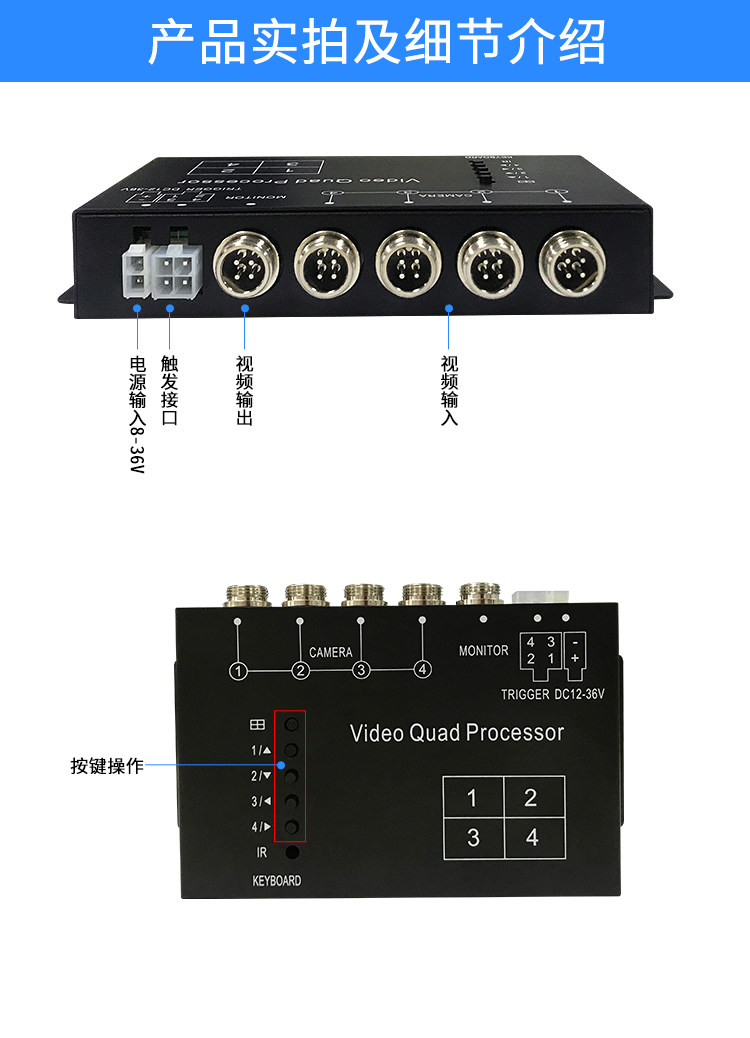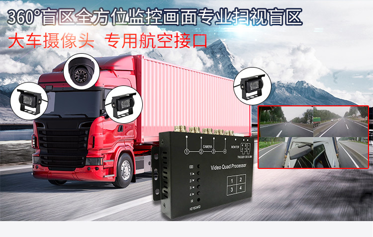 Picture splitter four-way vehicle surveillance high-definition camera 4 in and 1 out aviation head trigger line reversing video