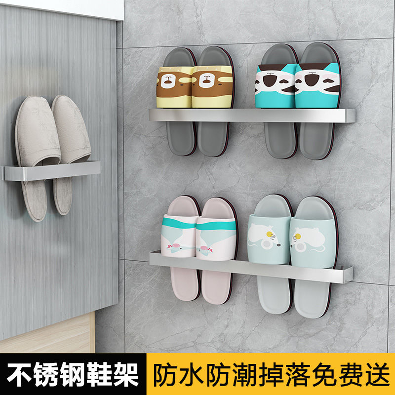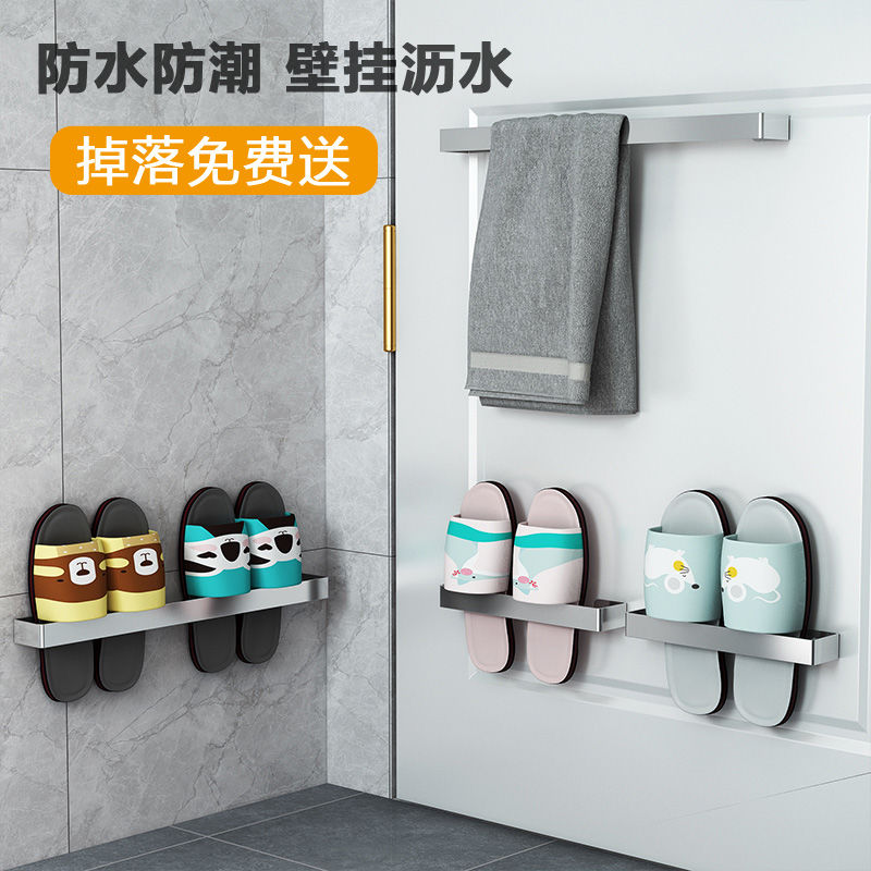 Stainless steel bathroom slippers towel wall hanging open-hole toilet door behind the shoes to collect shelves