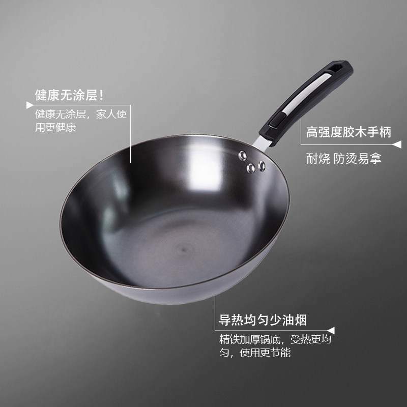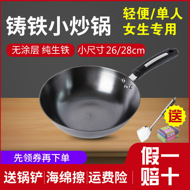 Mini small wok for one person household small iron pan Flat bottom lightweight single uncoated cast iron pot 26cm28cm
