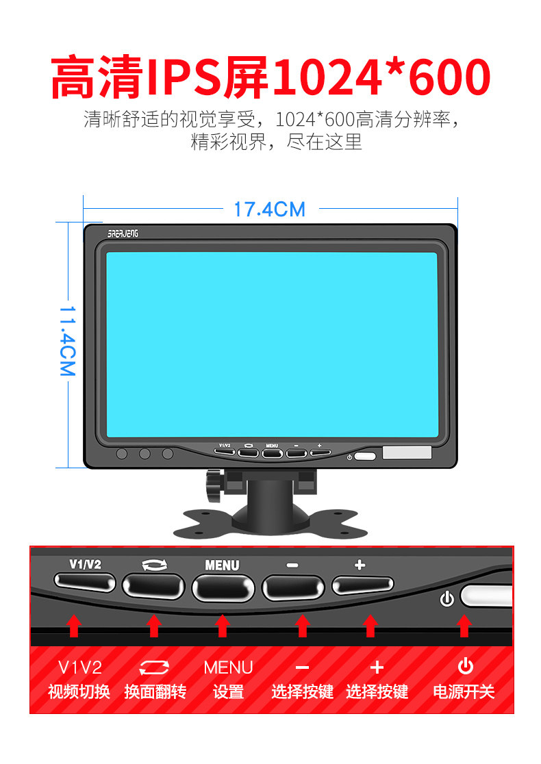 Travel bus bus dedicated 7 inch reverse image display HD 12 24V general monitoring screen