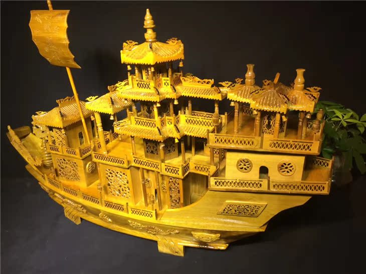 Gingfan sailing with boat to fit red wooden wood carving craftsmanship gifts decorated home decoration