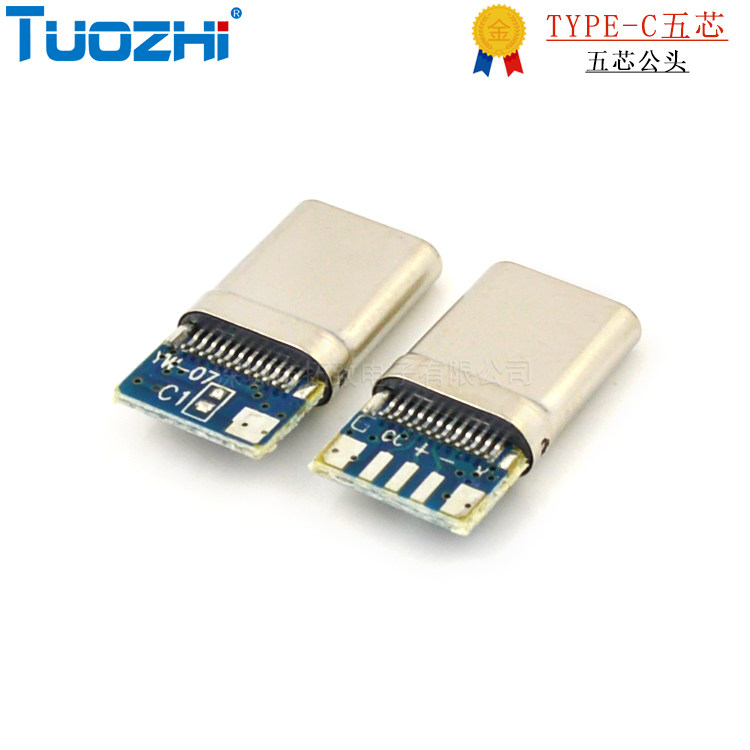 TYPE-C five-core male head with plate stretch data adapter Android welding wire Flash charge USB socket connector