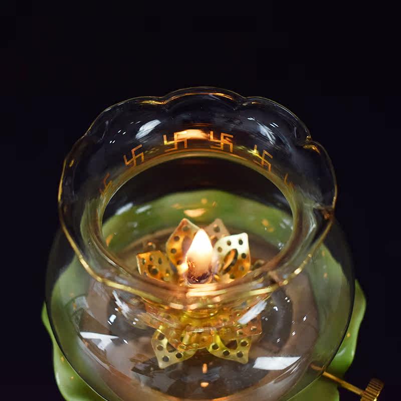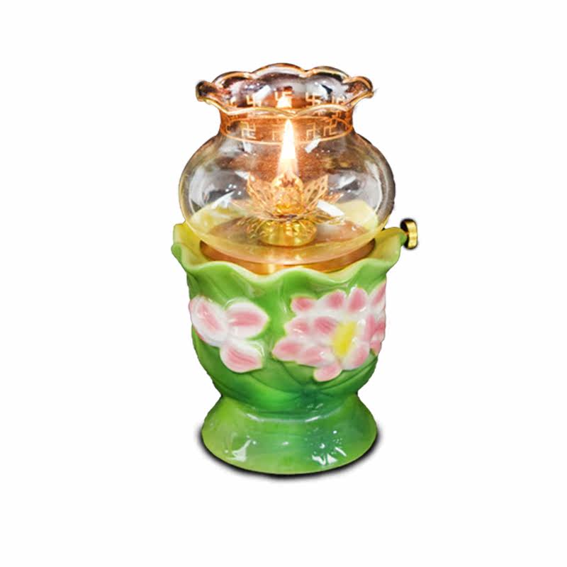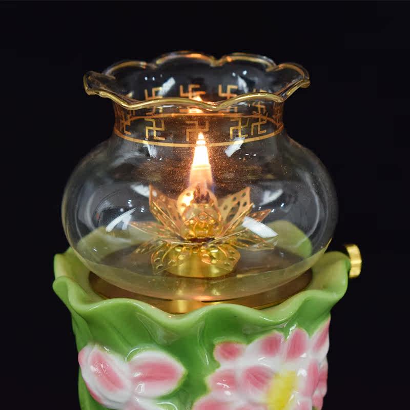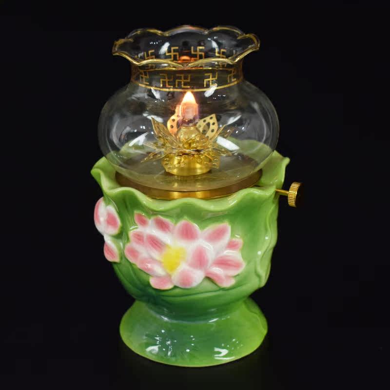 Relief lotus oil lamp liquid ghee lamp holder crystal adjustable light windproof oil lamp Buddha Hall for lamp Changming lamp holder