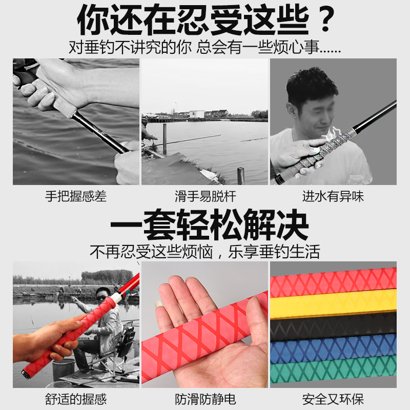 Fishing Rod Thermo-Shrink Tube Anti Slip Handlebar Sleeve Silicone Tangles Strap Thickened And Sweat-Integrated Handlebar Grip Leather Fishing