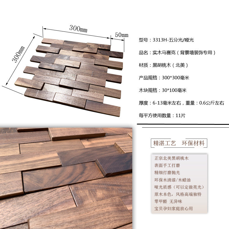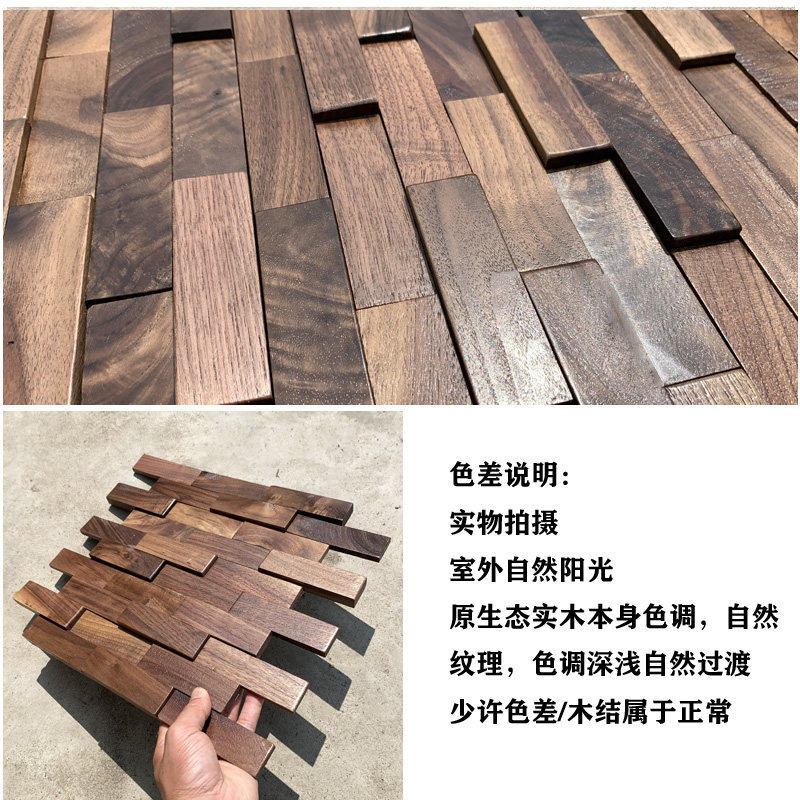 Living Room TV Background Wall Solid Wood Mosaic Dining Room Bar New Chinese Style Black Walnut Wood Light Extravagant Wall Decoration
