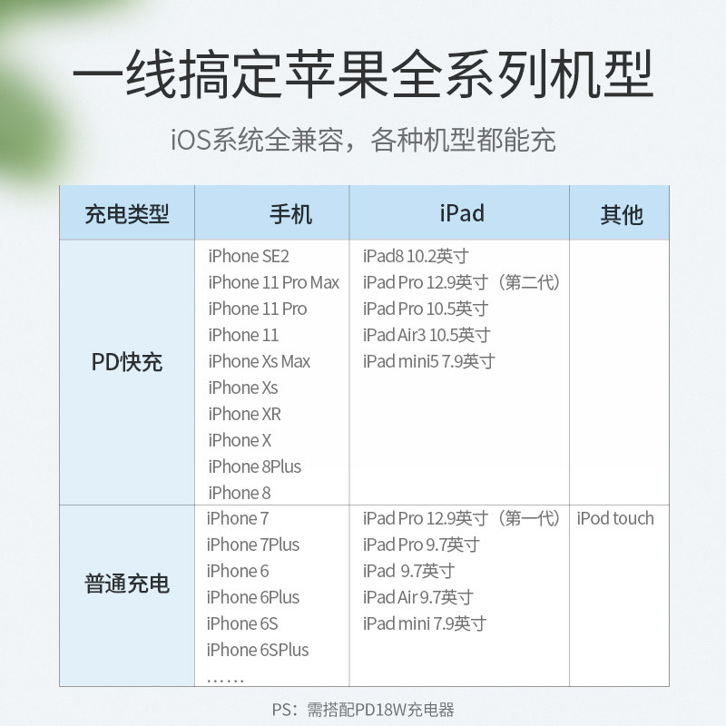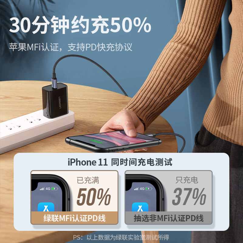 Green PD fast charge iPhone 13 data line mfi certification is suitable for Apple xr11 promax12 mobile phone 8ipad car 20w charging line 2m length li